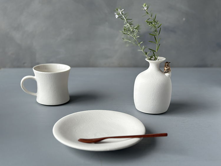 その質感、表情、フォルムから、手にしたとき何とも言えない包み込まれるような温もりを感じたのです。そう言えばその名もふっくら皿。