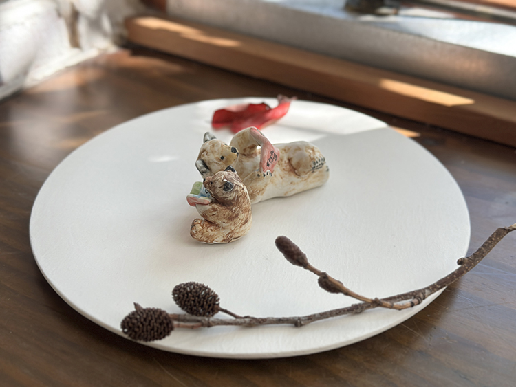 陽子さんのオブジェを皆さま口を揃えて可愛いと言われます。陽子さんは可愛すぎないようにしたいと言いますが、「それは陽子さんには難しいんじゃない」と笑顔の大介さん。そうそう、私も同意。陽子さんの作品には陽子さんの人柄がそのまま表れているのですから。