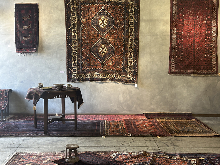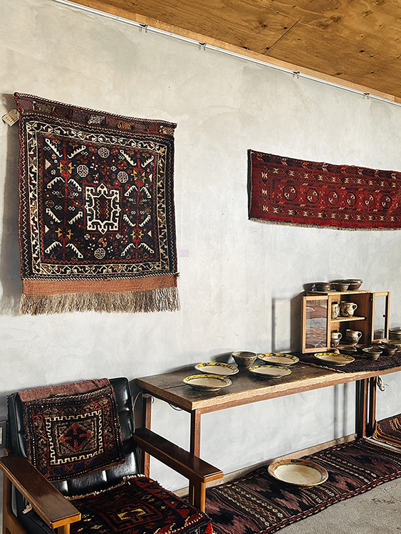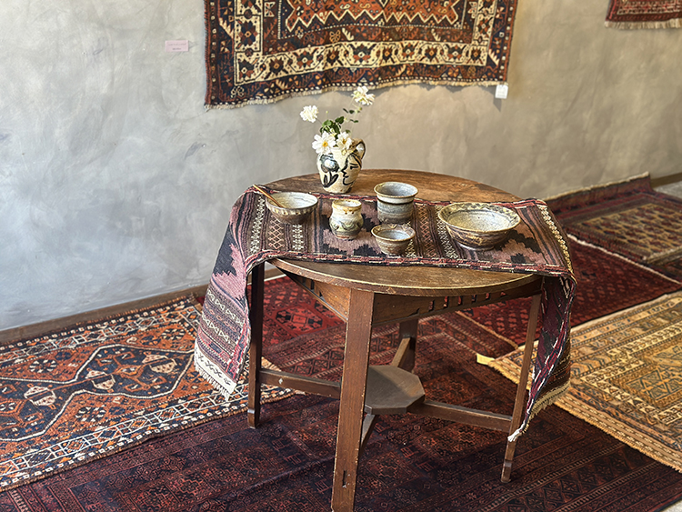 時を経た年代物のラグときっと相性抜群、たくさんのうた子さんの器とトライバルラグが共にある景色を見てみたいという思いから実現しました。