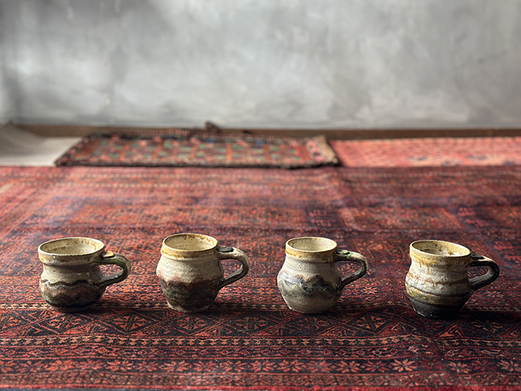 描いた妄想は私的には大当たりで、まるで器もラグと一緒に異国の地からやってきたようでした。お客様にも「これも外国からきたものですか?」とよく尋ねられるほど。