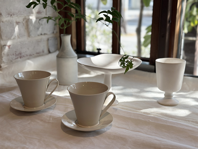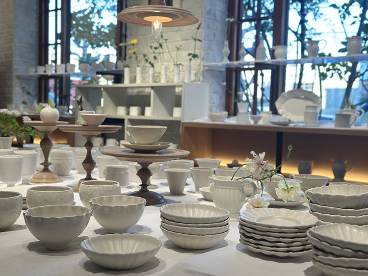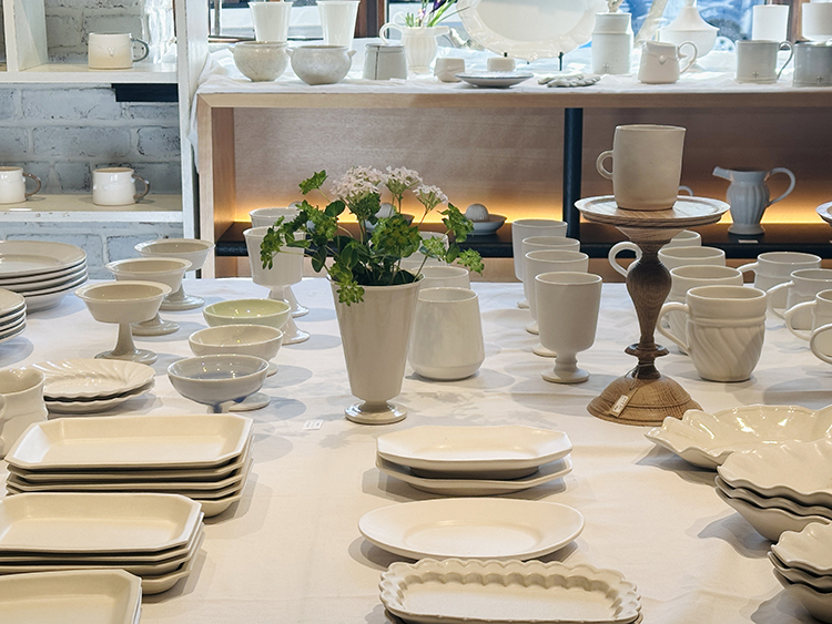とにもかくにも白の器ばかりが一面に並ぶ様は清涼感に満ちあふれていて、器たちは眩く白く輝いていて、お客様から「綺麗〜」とのお声もたくさんいだきました。